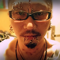 1977年 鹿児島生まれ。料理人・web製作を学ぶ。18歳でボディピアスに目覚め、身体改造アーティストになる。ボディピアス・スプリットタン・スカリフィケーション・シリコン・マイクロチップ・マグネットインプラント施術可。